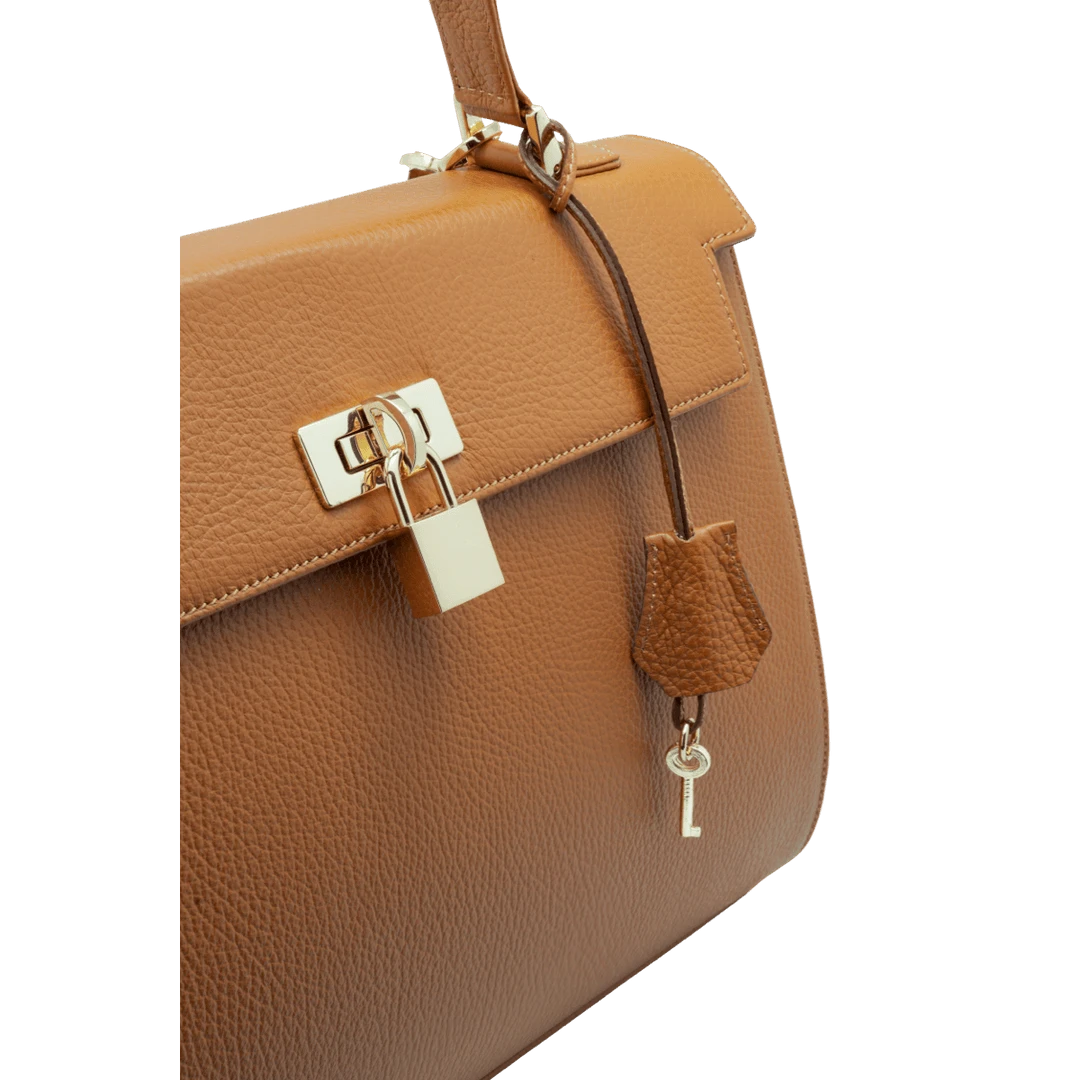 Women’s handbag with cross body shoulder strap, handmade in “alce” or “1000punti” style calf leather, elegant, spacious, can be worn for work or dressed up with eveningwear, comes with a safety padlock.