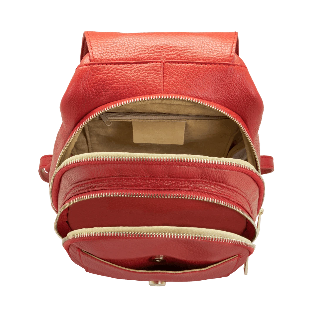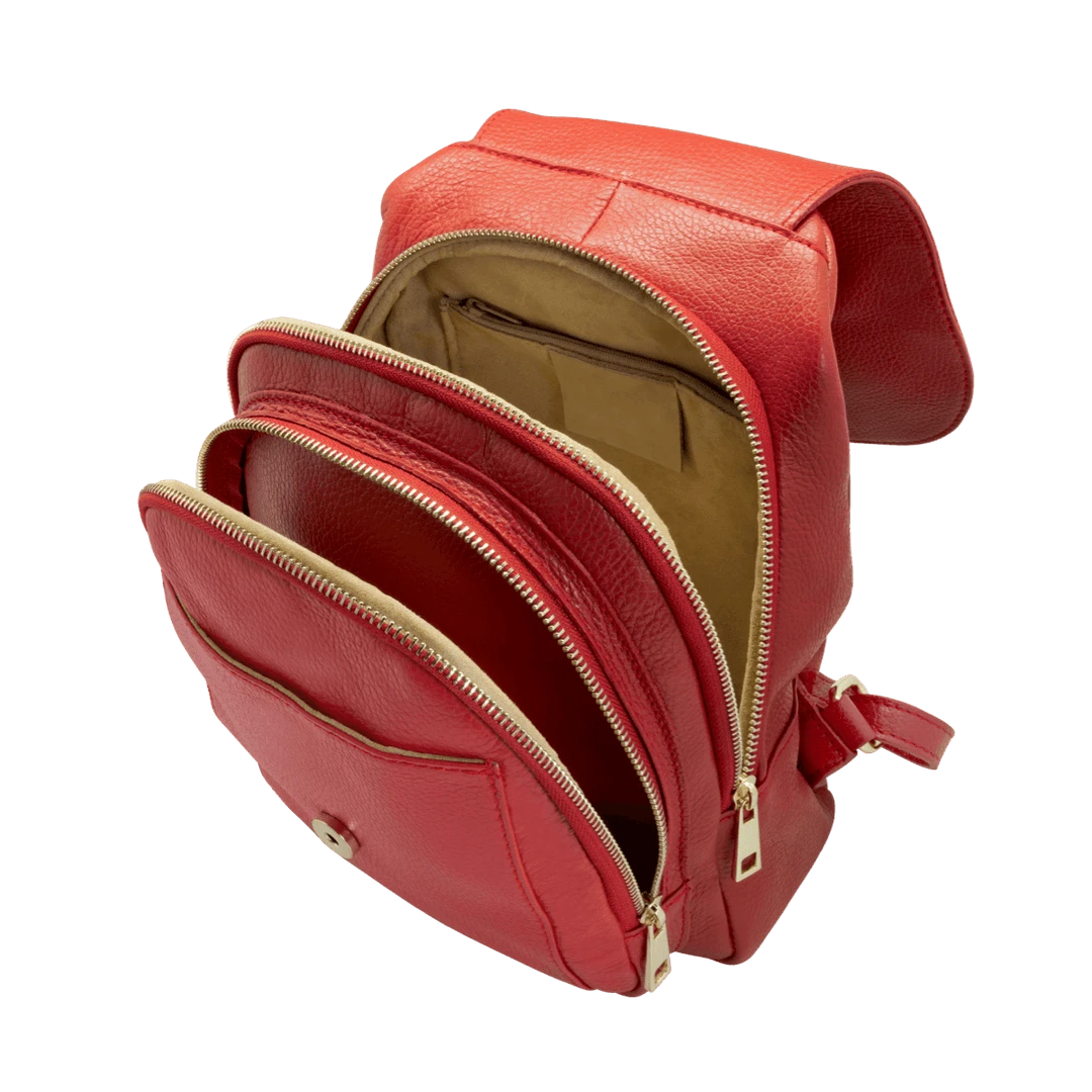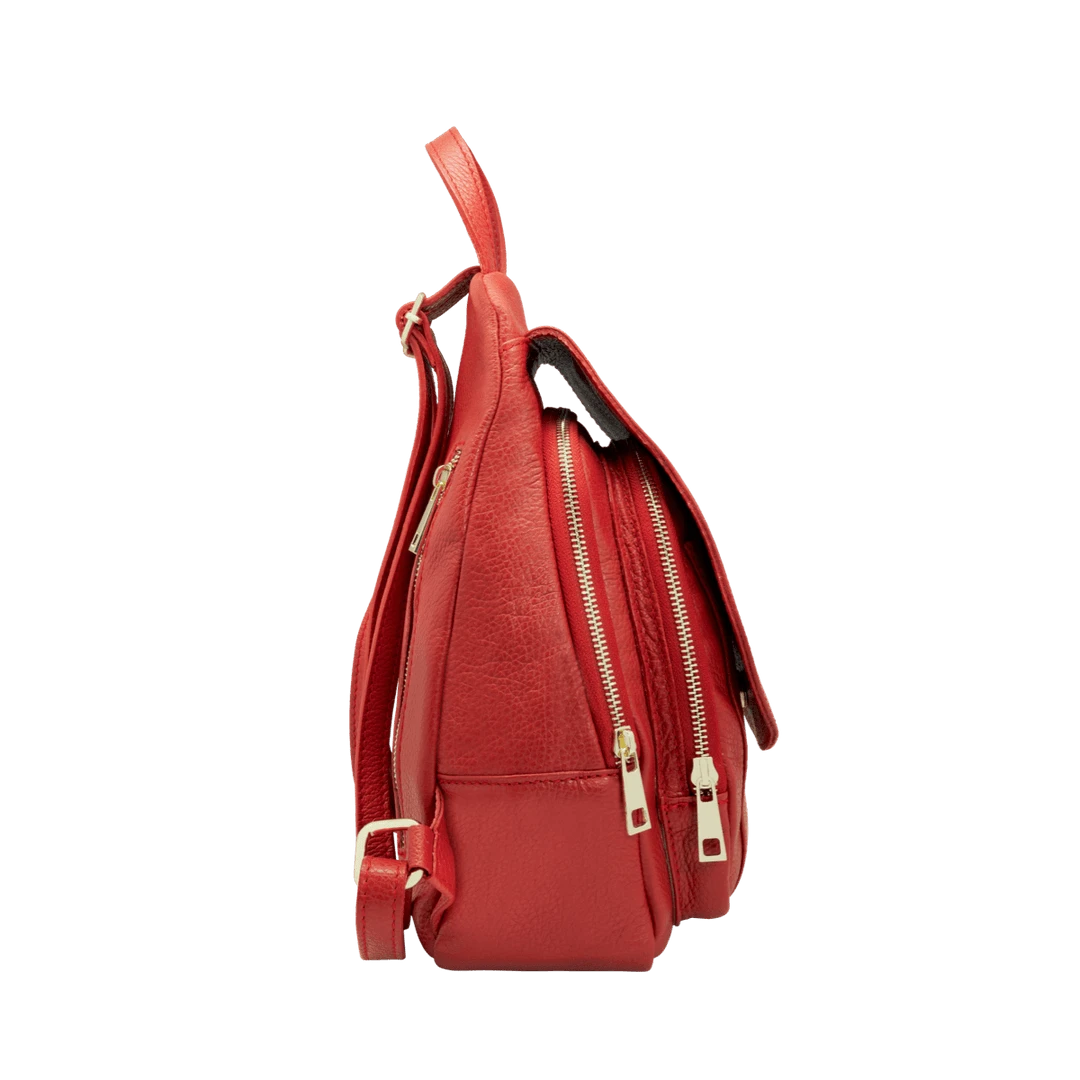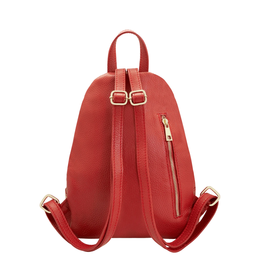 Women’s backpack with adjustable leather shoulder straps and handle, handmade in “alce” style calf leather, suitable for work and everyday use.